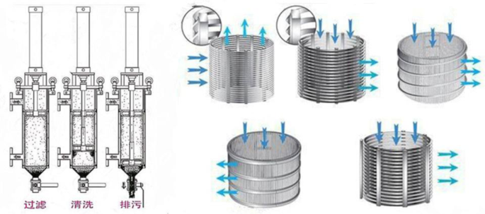 1、過(guò)濾:待過(guò)濾液體通過(guò)進(jìn)液口進(jìn)入過(guò)濾器,在過(guò)濾過(guò)程中,水中的雜質(zhì)堆積在不銹鋼濾網(wǎng)上,內(nèi)層雜質(zhì)逐漸堆積,內(nèi)外兩側(cè)由此產(chǎn)生壓差,通過(guò)壓差開(kāi)關(guān)監(jiān)測(cè)進(jìn)出水口的壓差變化;